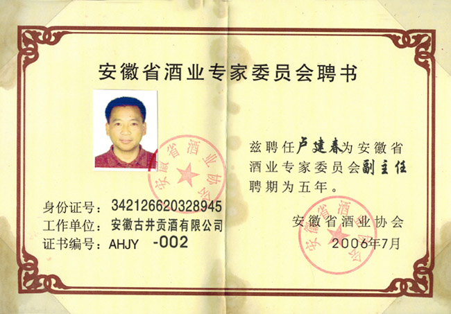 安徽省酒業(yè)專(zhuān)家委員會(huì)聘書(shū)