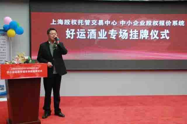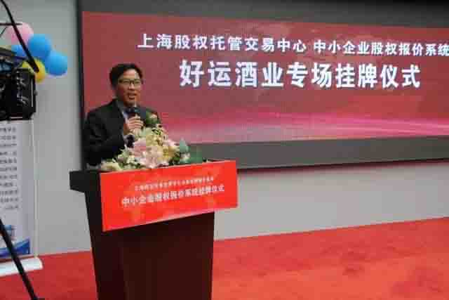 亳州市政府金融辦副主任周明華在好運酒業(yè)專場掛牌儀式上致辭